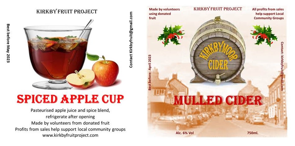 We will also have a limited number of bottles of spiced apple cup and mulled cider for sale for you to enjoy at home over the Christmas period. If you want to be certain of getting them before they run out then email us on kirkbyfruit@gmail.com to reserve yours for collection from the stall on Saturday.